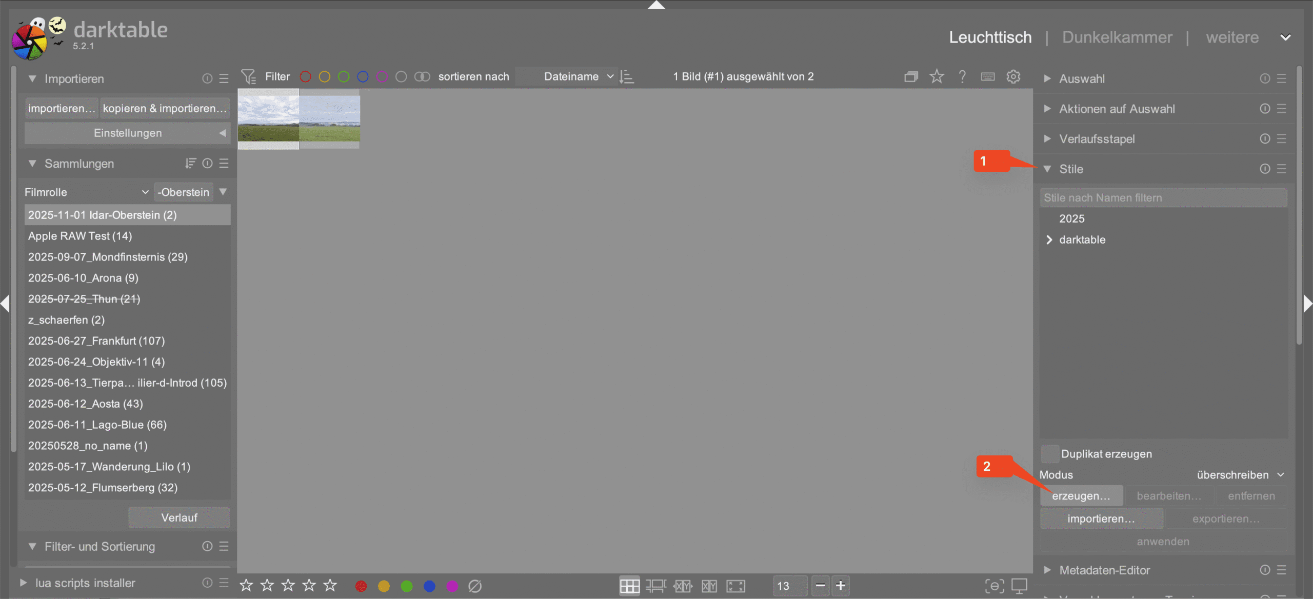 Beim Start landest du automatisch im Leuchttisch – der Verwaltungsansicht von Darktable. Falls nicht, kannst du oben rechts auf "Leuchttisch" klicken.